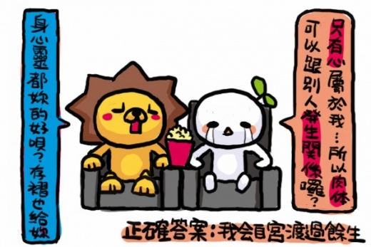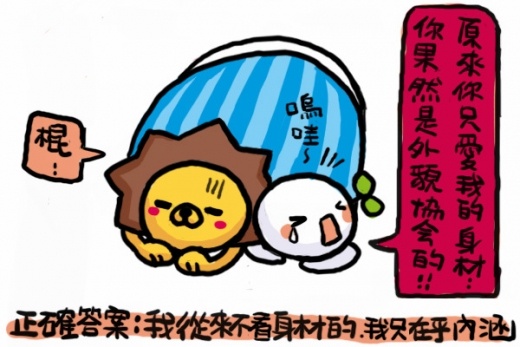 交往後當然情況也會有所不同 像我們這種老夫老妻型的情侶多半會變我畫的這樣=ˇ= 不管怎麼誇獎都被打槍...