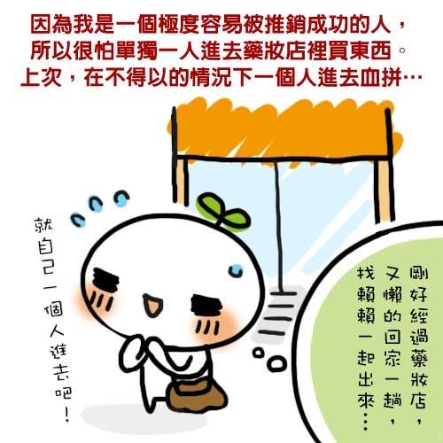 大家一定都有過這種經驗:買東西前,抱定主意絕不為推銷員三寸不爛之舌所動,但最後卻糊里糊塗彷彿被催眠一般,把口袋裡最後一毛都掏出來買推銷員推銷的東西,走出店後捶心肝懊惱不已,怨嘆自己意志不堅個性軟弱判斷力全無,重點是,還買了一堆根本用不到的東西。