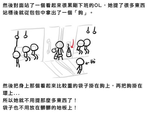 ---那位神奇的OL,居然想到要帶鉤子,還發明出這麼多用法,實在太有創意了!