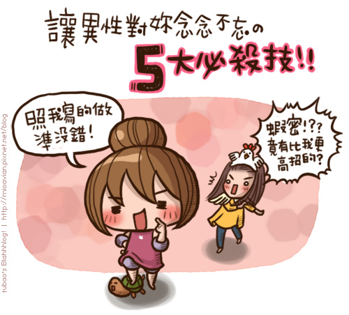 如果五大招都能夠達成的話,妳一定是個話題女孩! 至少台北市人口的百分之一的男性都會對妳留下深刻的印象,每天都跟朋友討論妳....