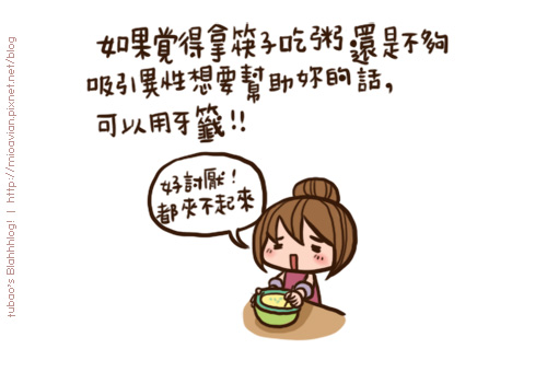 生病時要吃粥,吃粥也有大學問的,不要一開始就拿著湯匙,讓對方拿給妳吧!