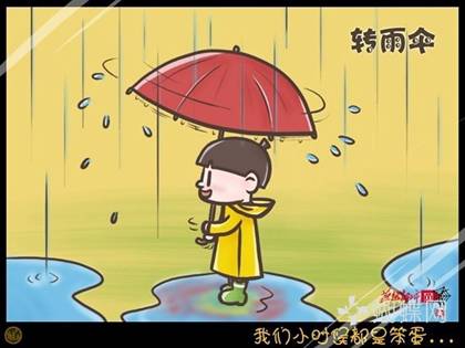 下雨打傘時轉傘看水珠飛出去