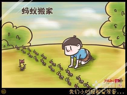 蹲在地上觀察螞蟻搬家