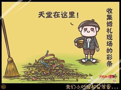 在婚禮現場撿人家扔剩下的彩色紙片當寶貝