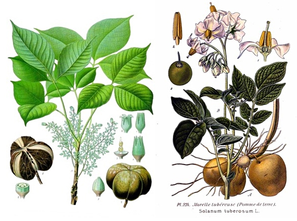 《扭轉近代文明的六種植物》先談馬鈴薯。馬鈴薯的原產地是安地斯高地,孕育出出印加文明的馬鈴薯,原本是有毒的野生芋薯類,可是當地人卻善用氣候條件製作的馬鈴薯乾。馬鈴薯橫渡大西洋到歐洲後,食用性原本不受青睞,而德國是最早把馬鈴薯當成主食的歐洲國家,後來法國科學家帕門提爾(Antoine-Augustin Parmentier,1737–1813)巧妙地讓馬鈴薯成為法國家常菜。 歐洲國力蓬勃發展要拜馬鈴薯之賜,馬鈴薯的高產量,提供穩定的熱量來源。馬鈴薯的熱量為麥類的四倍,還可預防恐怖的壞血病。馬鈴薯生長在地底的好處,所以不易被戰火摧殘。馬鈴薯成為歐洲主食的馬鈴薯,歐洲人在冬天再也不用吃又臭又難吃的鹽漬肉,因為馬鈴薯可以存放過冬,在冬天還能用來喂食豬隻,讓歐洲進入真正的肉食社會。 但是水可載舟,亦可覆舟,愛爾蘭卻因為太過依賴馬鈴薯而讓晚疫病(Phytophthora infestans)的卵菌(Oomycete)造成馬鈴薯腐爛而在1845年至1852年釀成大饑荒,讓當時英國統治下的愛爾蘭人口銳減了將近四分之一。