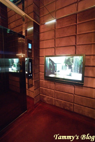 整面絨質的電梯牆面,有大大的液晶電視在裡頭,不斷撥放著介紹薇閣房型的影片,我們在電梯
