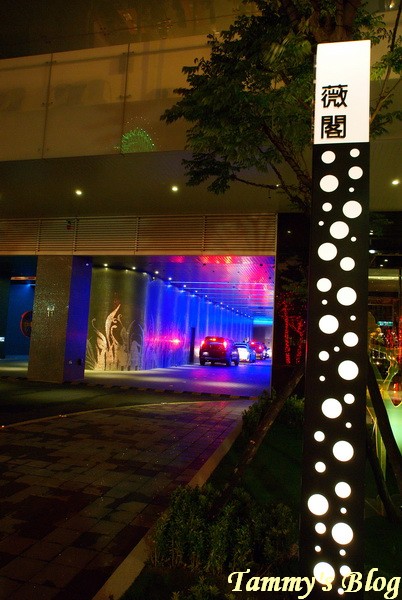 一天下班來到薇閣,漂亮房的房型沒有獨立車庫,必須將車子停到地下停車場,不過當天地下停車場不知是維修還是什麼狀況,沒法開放讓住客直接開著愛車去停,服務人員要我們直接將車子停在車道旁,交由他們的工作人員負責泊車,我們則是要到Looby做check in。也因為這樣,第一次有機會走下車拍拍摩鐵的外觀。