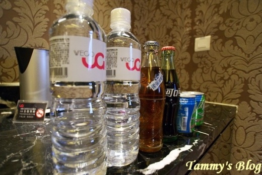 像個發光體的冰櫃,上面冰陣了許多飲料,泰咪不知道上面的飲料是不是可以讓房客自由取用的? 不過我想是吧?