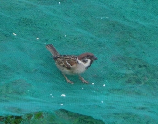 附近的麻雀,也吃得超爽 到底他們吃什麼呢?近看之後,便發現一個朋友正在努力的清理他塑膠袋裡的麵包碎塊,有餵過魚的都知道,一丟到水池裡,魚和烏龜就蜂擁而上,大家和樂融融的樣子。不過轉過頭一看,生態池旁邊一個不顯眼的地方,擺著一個「禁止餵食」的告示牌,上面還畫著手和魚,加上禁止符號。
