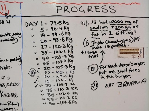 他不進健身房,停止任何運動,並大吃垃圾食物,用自己身體做實驗並每天量體重做記錄,看那兩週後的成果就已經夠嚇人...