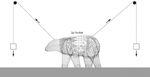 紐約設計工作室「Design Office Takebayashi Scroggin (D.O.T.S.)」為了參加今年的Beaux藝術展,特地使用了20000根尼龍束帶編織成一隻1:1實際大小的大白熊裝置藝術作品。