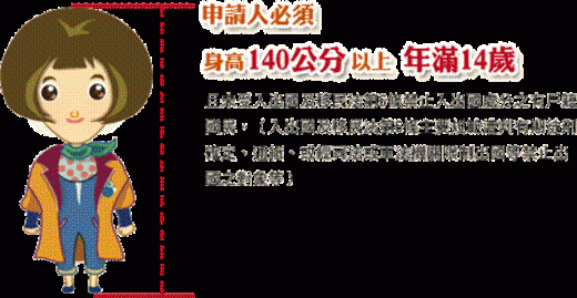 本人持「中華民國護照」或「台灣地區入出境許可證(金馬證)」及政府機構核發之證件(如國民身分證、健保卡、駕照等)至申請櫃檯即可免費辦理,電腦會錄存申請人臉部影像及雙手拇指指紋(指紋為自願錄存項目,非必要項目),申請人再於申請書上簽名確認即完成程序,整個流程大約需要2分鐘即可完成。(持金馬證者,僅限金門水頭商港使用)