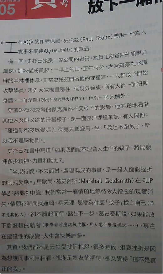 以下這段內容是在這一期的經理人雜誌(2012.1 Page.72)中看到,覺得很有感覺,分享出來給大家: