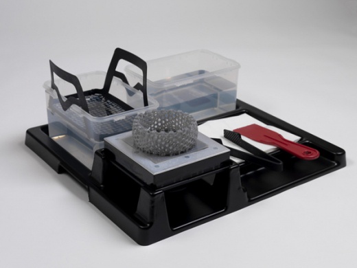 當然印出來的模型色彩和使用的原料很有關係,首波推出的顏色是中性的灰色,之後會推出各式各樣的顏色,甚至是透明的材料,而隨著機器會附贈一個托盤,這個 托盤有效地讓你的桌面保持最乾淨的狀態。目前這款機器正在kickstarter上集資,希望能夠真正的生產出來,如果對設計3D模型有興趣的朋友可以試著去這裡集資看看喔!