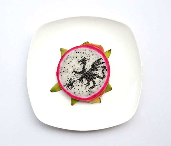 沒錯!雖然有點不可思議,不過的確是如同大家所想的,慢慢將籽挑出來,接著再拼貼上另外一片火龍果。這完全就是考驗耐心與細心的時刻,如此用心的對待食物比起一口把它吃下,似乎還更顯尊重!