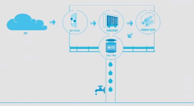 提出方案:科技能夠解決水資源缺乏的問題The University of Engineering and Technology 和 DraftFCB 在一座位於沙漠中的城市,架上大型的廣告看板,然而這個廣告看板可不是大學的招生資訊,而是結合科技的水資源生產裝置。這個地區空氣中的濕度高達98%,但是降雨率卻低的可憐,而這座擁有廣告看板外型,實際上卻是水資源生產裝置的機器,能夠將空氣中的濕氣轉變成飲用水,這讓當地的居民能夠帶著水桶裝每天的飲用水。