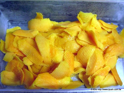 將冰凍的芒果切片後冷藏,非常方便,不用擔心芒果放太久爛掉、軟掉。