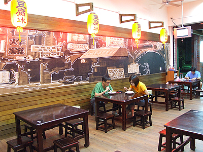 位於員林大同路二段,昇財麗禧前的唐玉豆腐冰。室內裝潢佈置,大紅燈籠下、小桌几、古蹟、老街布景,有著懷舊氣氛,要品嚐員林美食小吃,唐玉豆腐冰也不容錯過。尤其特製的三種口味豆腐有飽足感,讓你開心吃豆腐。