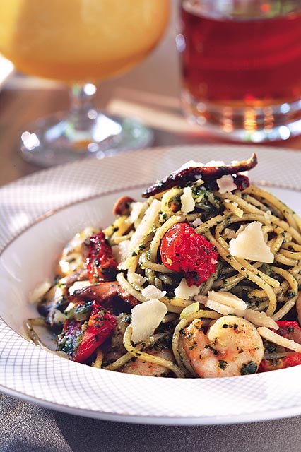 胡天蘭說,現炒義大利麵,雖是自己配料,但放在餐檯上的佐料很豐富且新鮮,番茄乾、蝦仁都給得大方,特別是青醬味香濃,麵條很有口感,水準與專業義大利餐廳相較,有過之而無不及。