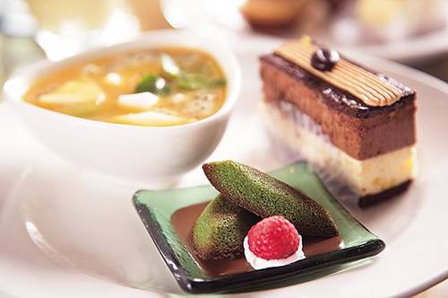 每天推出的甜點四十多種,現作薄餅最受歡迎,淋醬有紅酒櫻桃、覆盆子、紅酒梨等,最後再加冰淇淋,冷熱互融,滋味美妙。