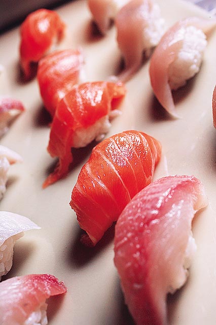 現切的生魚片與握壽司,新鮮超值,午茶時段有三種魚類供應,輪流出現兩種,握壽司的魚類變化可以到五種,對於愛吃海鮮的人來說,是好選項。