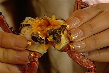 讓大家方便吃到毛蟹的膏還有腳的肉配上獨特的五花醬 吃起來真的是超讚