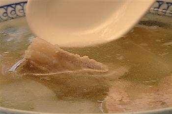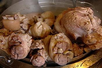 ,第二代老板許振盛先生說他們家的豬腳就是簡單的白水煮的,豬腳要煮兩三個小時就可以了,重要的是一定要用溫體豬的豬腳, 每天新鮮現煮,老板說豬腳要挑沒有受傷的,毛一定要挑乾淨,這樣吃起來才會好吃,高湯也是用一大鍋的豬腳熬成的高湯所以喝起來非常的甜美,