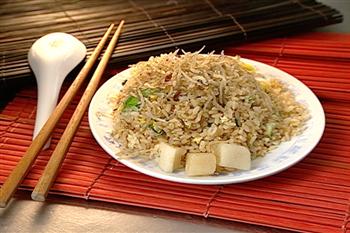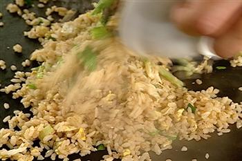 為什麼是會跳舞的炒飯呢? 就是因為這鐵板的關係了,這家炒飯是用鐵板來炒的所以受熱溫度均勻米粒自然而然就會跳起舞來了 也不會黏黏稠稠的 超香超好吃的,再加上老板用舊米就是要放一年以上的米來煮所以炒起來的飯真的是粒粒分明.再放上魚勿仔魚 香噴噴的炒飯一盤40元就上桌了。