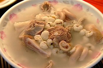 老板說他們挑豬肚 小腸 粉腸都會特別挑肥一點的所以吃起來的口感特別好,再加上腸子處理的非常乾淨所以吃起來可是一點腥味都沒有.老闆對自家的四神湯超有信心一般四神湯都喜歡加米酒加中藥就是為了除去內臟小腸的腥味老板覺得如果不喜歡加米酒 原味的超讚的啦