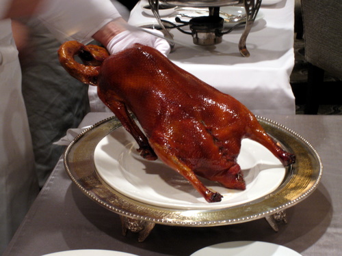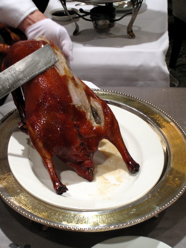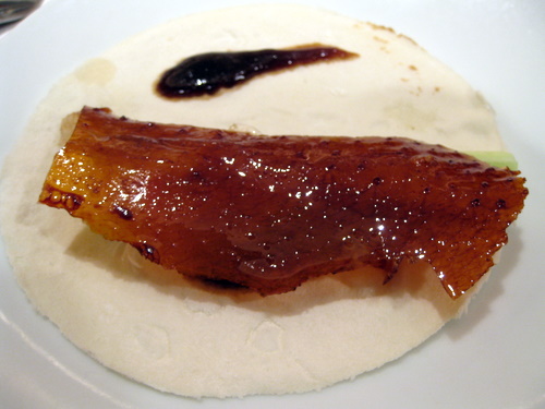 片皮燒鵝Roasted Goose Skin Wrapped in Pancake。