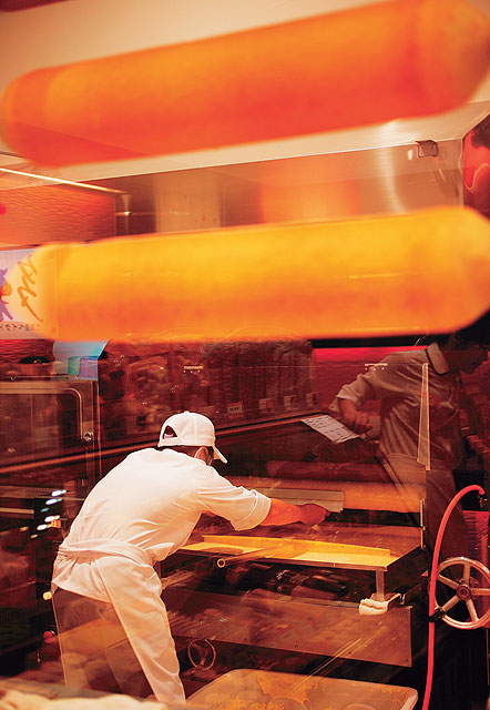 甜點區以「多栗」的「年輪蛋糕」最為獨特,每天現做時,可看見師傅把一層層麵衣裹在長約1公尺的棒上,反覆約裹20層後再低溫烘烤定型,一根根掛在架上降溫,不論是香氣或氣勢都獨冠全台。由於反覆烘烤,因此口感超綿密緊實,很適合配紅茶等飲品。