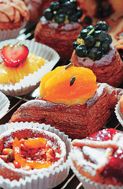 「燒果子」系列,以搭配新鮮水果的「水果可頌」最受歡迎。(三五元╱個)