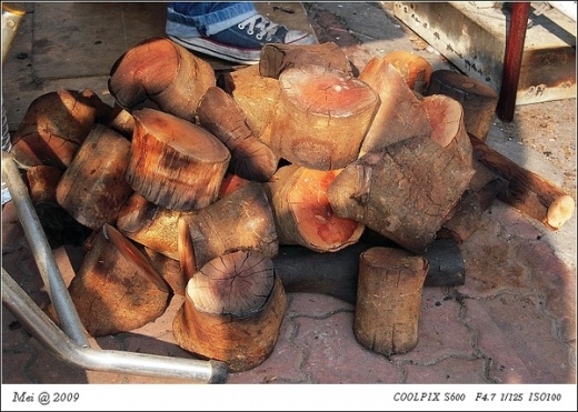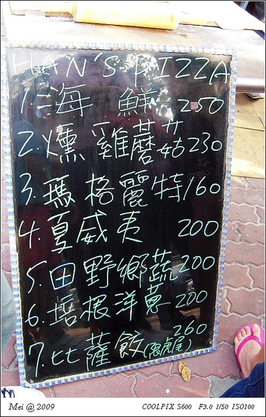 看著Memu的左右兩邊都還有顧客的腳,呼..怎樣都避不掉,人太多了 等了一下下,我們預訂的Pizza終於烤好了