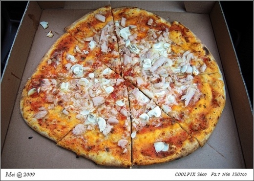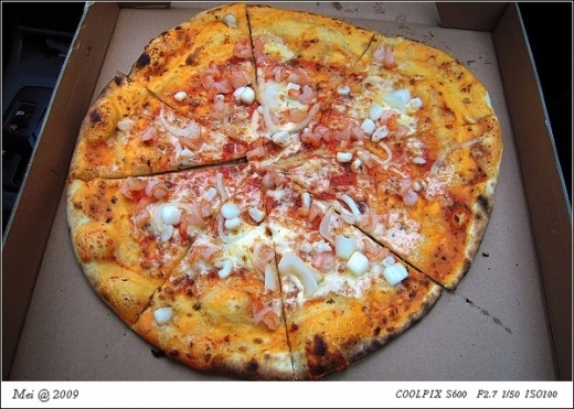 回到家Pizza已經有點涼了,雖然不夠熱,不過還是挺不錯吃的