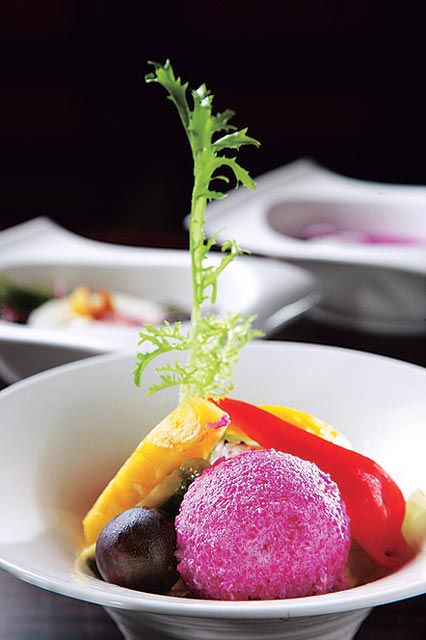「冰淇淋沙拉」以紫高麗菜、蘋果製成的冰沙取代醬汁,相當有創意。
