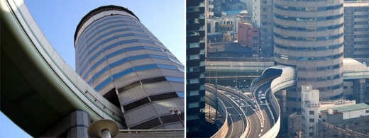 These images illustrate the solution engineers used when building multi-lane highway interchanges in some of the world's most crowded cities in Japan: go vertical!