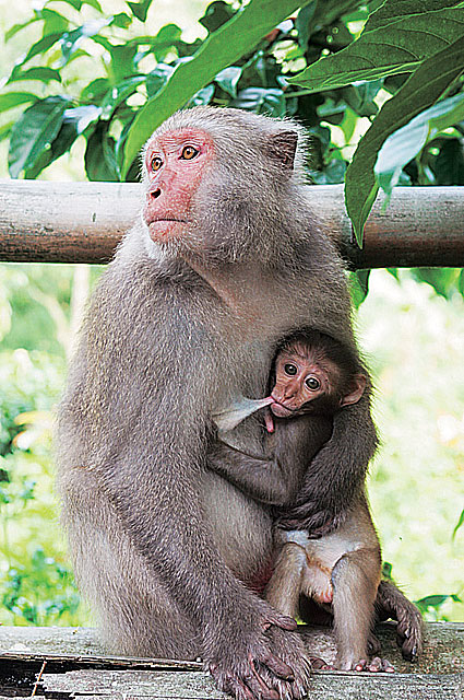 沒一會兒,猴王大搖大擺走在林蔭步道,身旁跟著十多隻猴子,小猴子睜大咕嚕眼睛、窩在母猴懷裡,九把刀猴模猴樣坐在路中,我心想「真有你的一套!」猴群不打緊地蹲在他身旁,再又跳上樹幹玩耍,調皮逗趣惹人發笑。