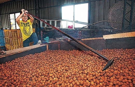 二水龍眼乾採傳統柴燒,九把刀興奮拿起竹犁、翻龍眼。
