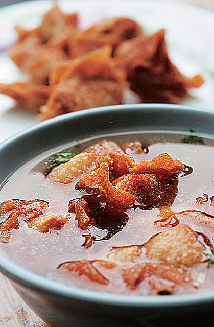 二水的餛飩湯先炸再入湯,口感酥脆,湯頭清淡。(十元╱碗)