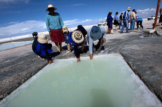 幾十年來,每年有成千上萬遊客光臨的烏尤尼鹽沼不但是滿足探險旅遊者好奇心的樂園,也是貧窮的鹽農們討生活的地方,他們依靠從這裡挖鹽賣鹽為生。和鹽類生產不一樣,生產鋰需要幾個月的緩慢蒸發和數星期的實驗室提純,但即便如此,烏尤尼鹽沼還是會依靠這種珍貴的礦藏一躍成為玻利維亞的經濟增長引擎。