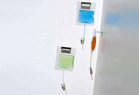 點滴高高掛,洗髮精、沐浴乳、潤絲精各一袋,一按壓就有好方便!