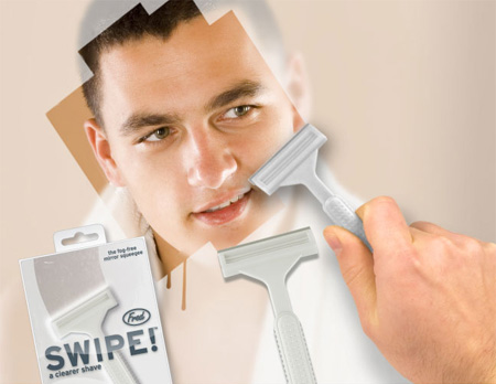 自己的鬍子自己刮,浴室的鏡子也自己刮!鏡子起霧看不清,刮一刮就明亮!但是不能刮到自己臉上去。