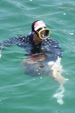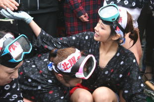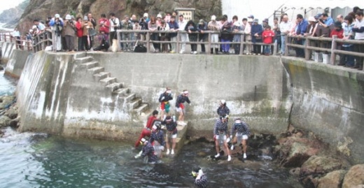 海女在下水前只在臉上塗抹一點防曬的油脂,