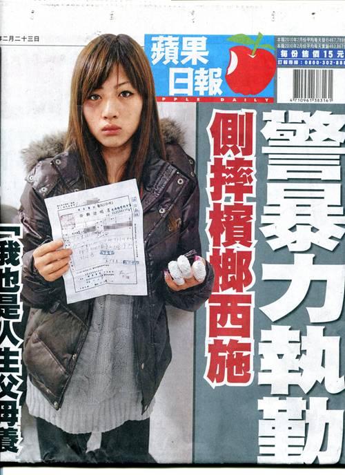 被警察摔倒在地的檳榔西施顏如憶,根據東森新聞獨家追蹤,發現她還兼差拍攝男性雜誌封面,照片幾乎全裸,作風非常大膽;她在部落格透露出想紅的心願,還說有人拿雜誌要她簽名,這回她更自嘲,才剛上雜誌封面,又登上社會版頭條。