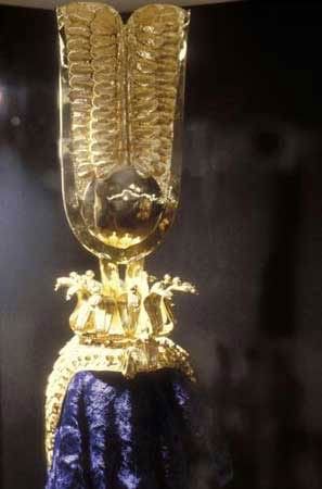 這個王冠上裝飾有埃及人崇敬的動物形象。