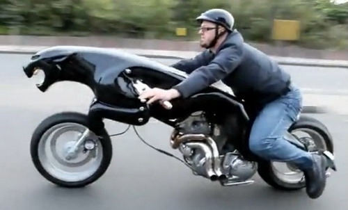 相信大家第一眼看到這部“豹形”機車,心裡一定會跟筆者有同樣的想法─「這是Jaguar生產的機車嗎?」因為整體豹的外型與Jaguar汽車上的豹形立標真是像極了!不過事實上這兩者卻是不相干的,因為這部豹形機車是由一家「Massow Concept Motorcycles」公司所設計打造而成,與Jaguar汽車並未有任何關係;不過無論如何,這部被命名為「Jaguar Leaper」的重機,實在是酷弊又帥呆了,想想這車如果騎在台北東區上不知道會有多騷包,不知會吸引多少路人注目與稱羨的眼光,光這一點心裡就很爽了!(不過也可能會被警察伯伯開罰單與扣車吧!)