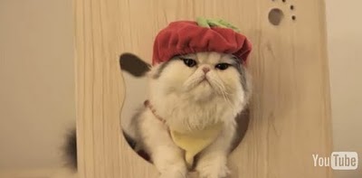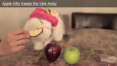可愛的波斯貓「MOCHI」穿著蘋果裝,並且津津有味地吃著蘋果,這段短片在上週萬聖節前後大受歡迎,瀏覽人次已突破40逾萬。主人打趣說,因為大家都知道「一天一顆蘋果,醫生遠離我」,所以蘋果貓 MOCHI乾脆自己當一天的蘋果,希望醫生可以遠離牠一輩子。獸醫和專家也提醒,蔬果並不是貓咪的主食,切勿攝取過量。