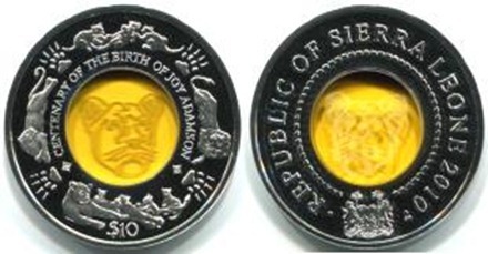 這枚硬幣是為了紀念(野生動物保護學家,作家)喬伊-亞當森女士的一生,她是《生而自由》(又名《獅子和我》)的作者,該書中名為艾爾沙的小獅子,被刻到了黃色水晶之中。該書還被拍成了電影,並獲得1967年奧斯卡最佳原創電影配樂、最佳原創電影歌曲兩項大獎。