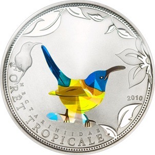 多哥的這枚硬幣,在純銀的背景中刻著一只棱柱體的太陽鳥,當移動硬幣時,硬幣隨著光線變化而閃爍,並改變顏色。如果你不經常喂這只鳥,它可是會飛到另外的硬幣上去喲。