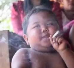 印尼兩歲幼童亞狄(Ardi Rizal)每天要抽兩包香菸,他的父親穆罕默德(Muhammad)告訴英國「每日郵報」(Daily Mail),只要他一把香菸從亞狄身上拿走,他就會大哭大鬧。